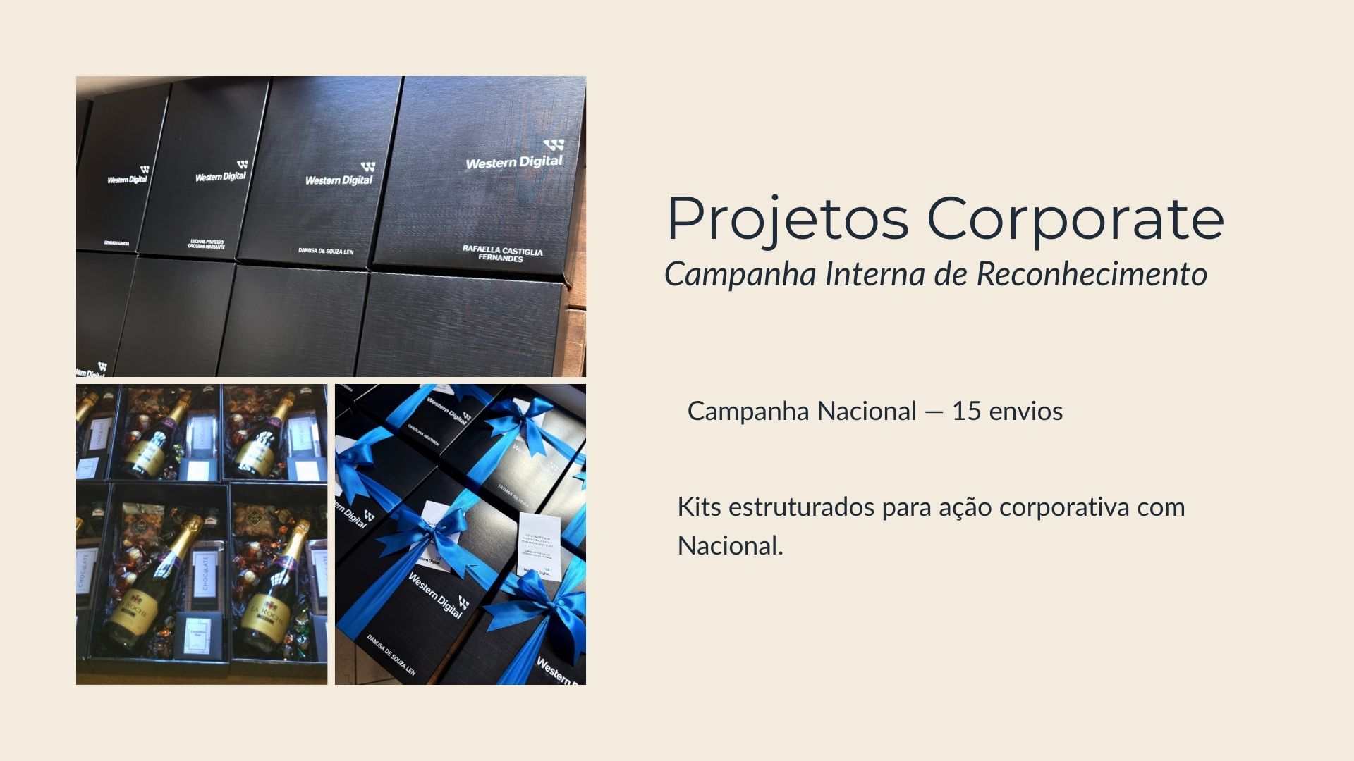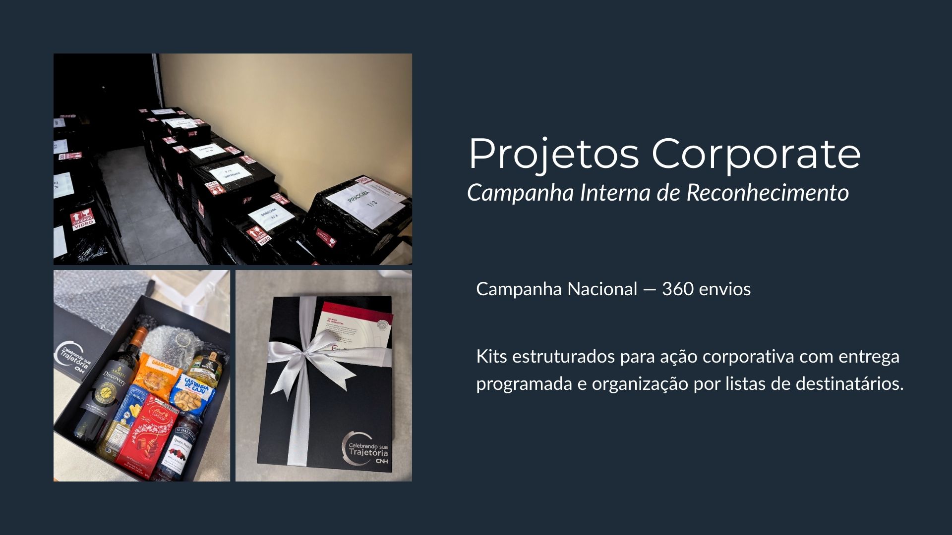 Cestas corporativas para premiações, campanhas internas e ações de valorização de equipes.